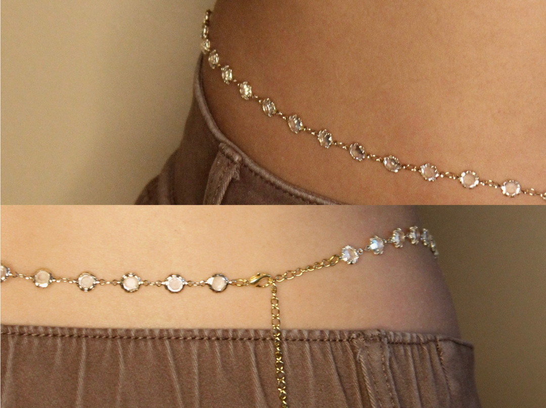 Waist jewelry to fit everybody and gemstone beadwork to heal.