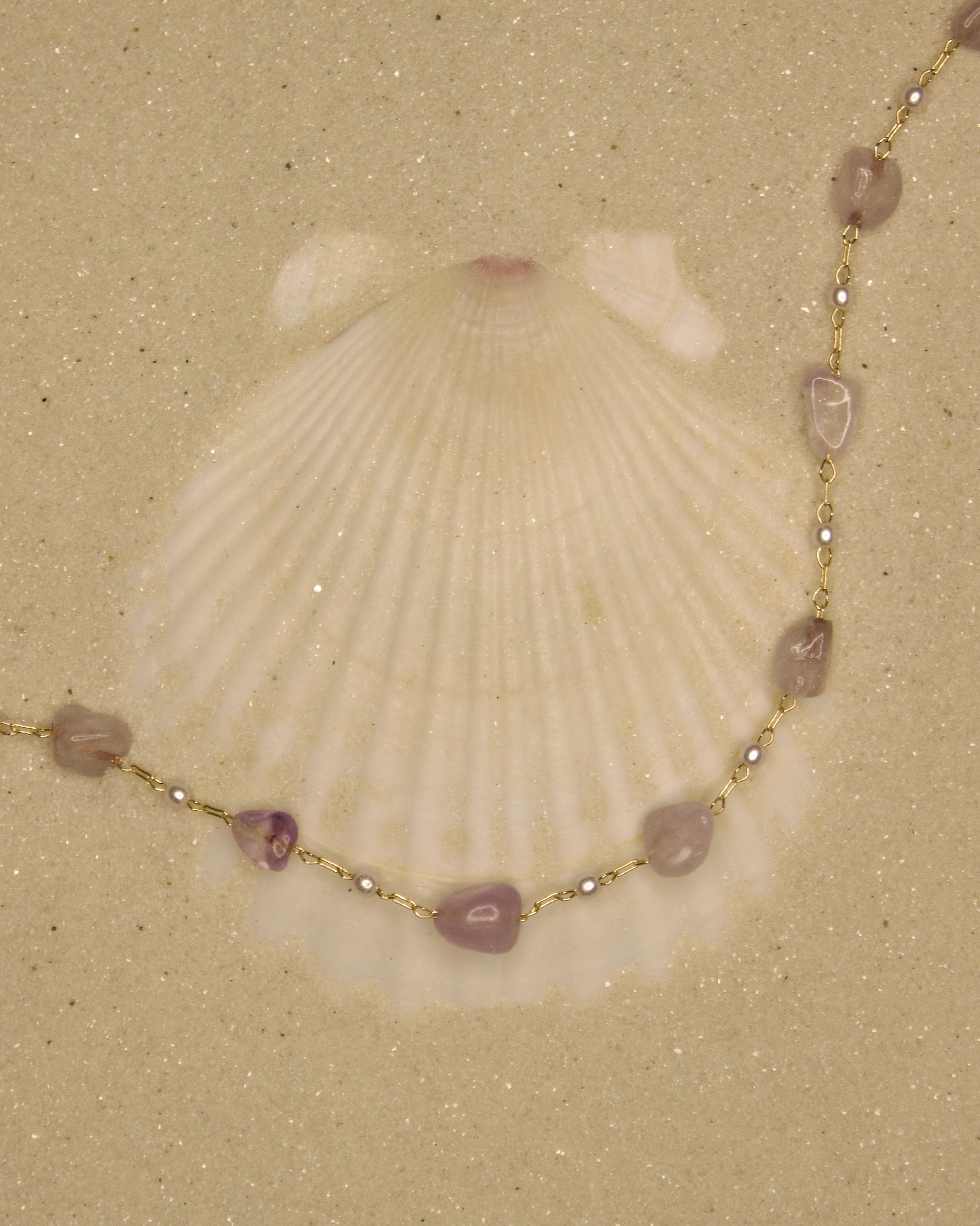 Enter the healing waters of the Lavender Lagoon Chain, a piece that holds the spirit of intuition, wisdom, and healing. This gold chain is adorned with amethyst gemstones, which promote love of the divine and encourage selflessness and spiritual wisdom. Amethyst opens intuition and enhances psychic gifts, making it a powerful guardian against anxiousness, and it benefits the mind by providing serenity or stimulation as needed. Let its serene presence ease your mind, body and spirit and be your guide on the journey of self-discovery and healing while restoring your mind, body, and spirit. Embrace the ease, and let the Silent Cave Chain guide you into the quiet realms of inner peace.